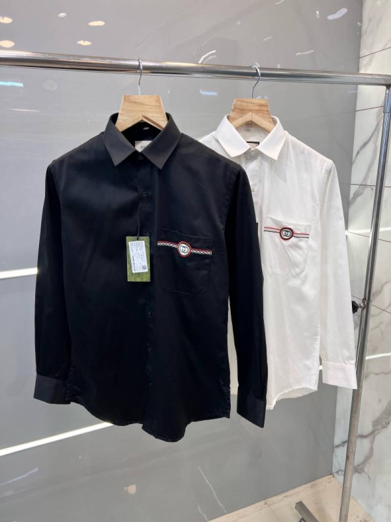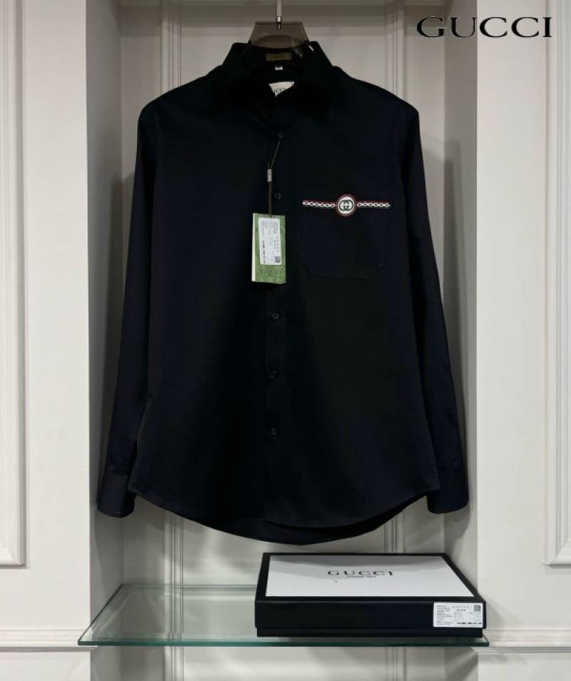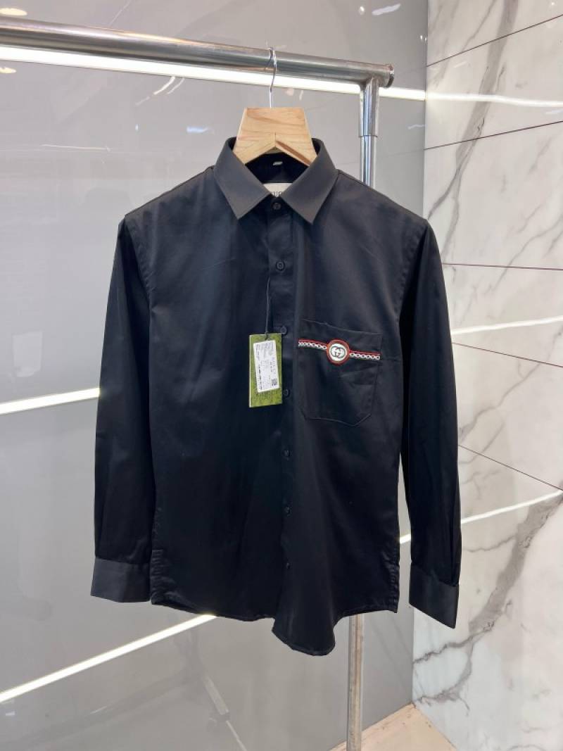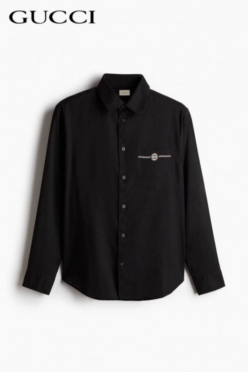 Gucc i Black Pocket Embroidered Designer Shirt with Brand Box and Carry Bag (1913)